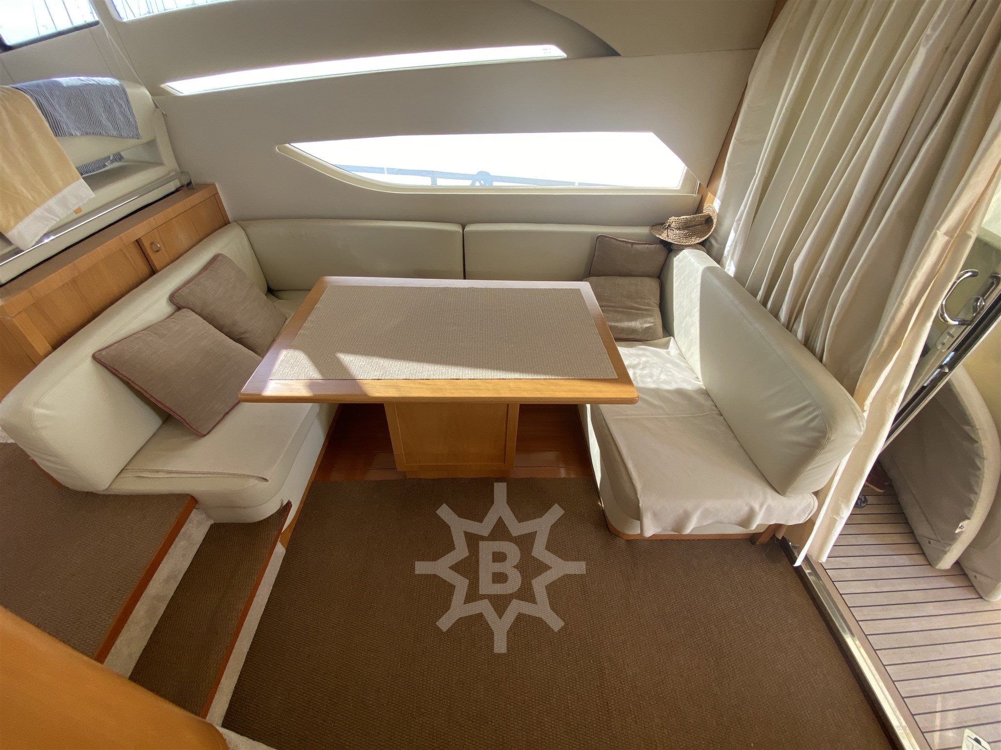 Bussola - Comando motori elettronico - Contamiglia - Ecoscandaglio - GPS - Joystick - Pilota automatico - Radar - Radio VHF - Ancora - Autoclave - Caricabatterie - Doccia esterna - Doppia timoneria - Flap idraulici - Passerella - Piattaforma - Pompa di sentina automatica - Pompa di sentina manuale - Pozzetto Teak - Presa 220V banchina - Salpa Ancore Elettrico - Scaletta da bagno - Aria condizionata - Boiler - Clima reversibile - Pavimento interno in legno - WC marino elettrico (2) - Altoparlanti - Impianto TV - Stereo - TV (2) - Cucina - Frigorifero interno - Microonde - Piastra in vetroceramica - Bimini - Copripozzetto - Cuscineria completa - Cuscineria di poppa - Cuscineria di prua - Cuscineria fly - Cuscineria Pozzetto - Oscuranti -