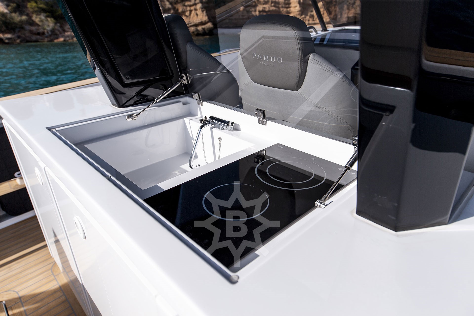 Bussola - Comando motori elettronico - Computer di bordo - Contametri catena - Contamiglia - Ecoscandaglio - Interfaccia - Joystick - Log - Luci di navigazione - Pilota automatico - Plotter con antenna GPS - Radio VHF - Sedile Copilota - Yacht controller - Ancora - Auto Dynamic Trim Interceptor - Autoclave - Camminamenti laterali in teak - Caricabatterie - Cavo corrente di banchina - Doccia esterna - Elica di prua - bow thruster - Flap idraulici - Garage per tender - Lavandino nel Pozzetto - Luci di cortesia - Parabordi - Piattaforma - Pompa di sentina automatica - Pompa di sentina manuale - Pozzetto Teak - Presa 220V banchina - Salpa Ancore Elettrico - Scaletta da bagno - Tavolo pozzetto - T-Top - BBQ/ Grill - Boiler - Impianto acque nere - Inverter - Pavimento interno in legno - Prese interne 12v - Prese interne 220v - Serbatoio Acque Nere - WC marino elettrico - Altoparlanti - Stereo - Frigorifero esterno (3) - Bimini - Cuscineria completa - Cuscineria di poppa - Cuscineria di prua - Cuscineria Pozzetto - Telo copriconsolle - Telo coprisedile - Tendalino -