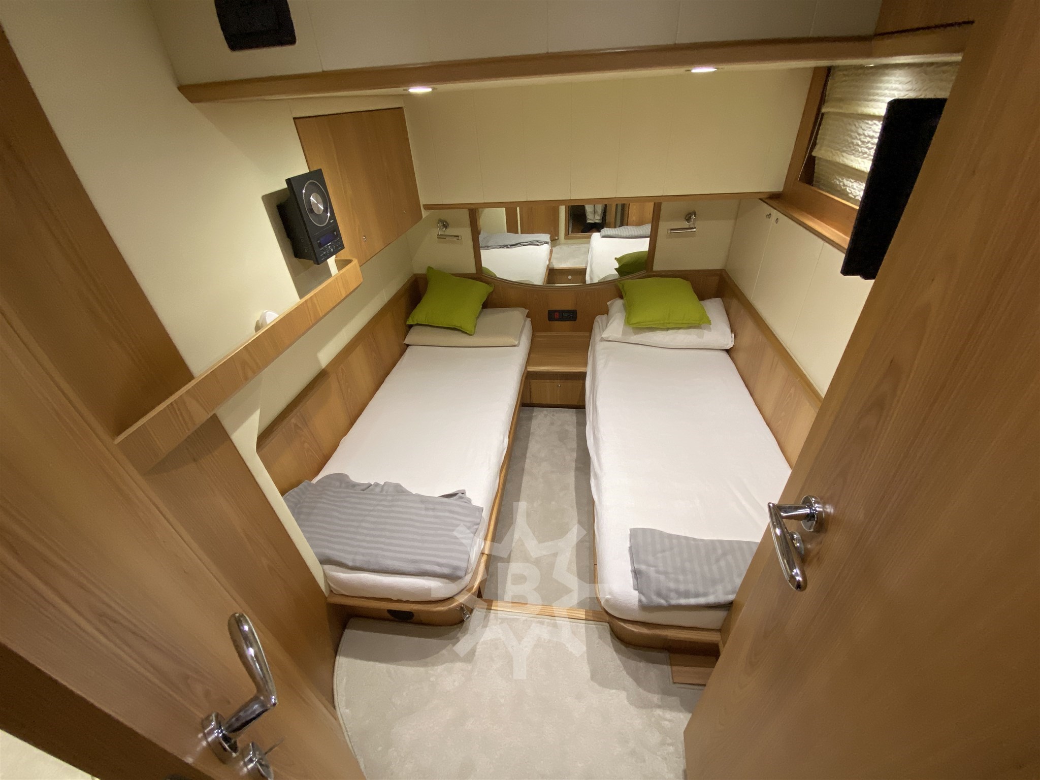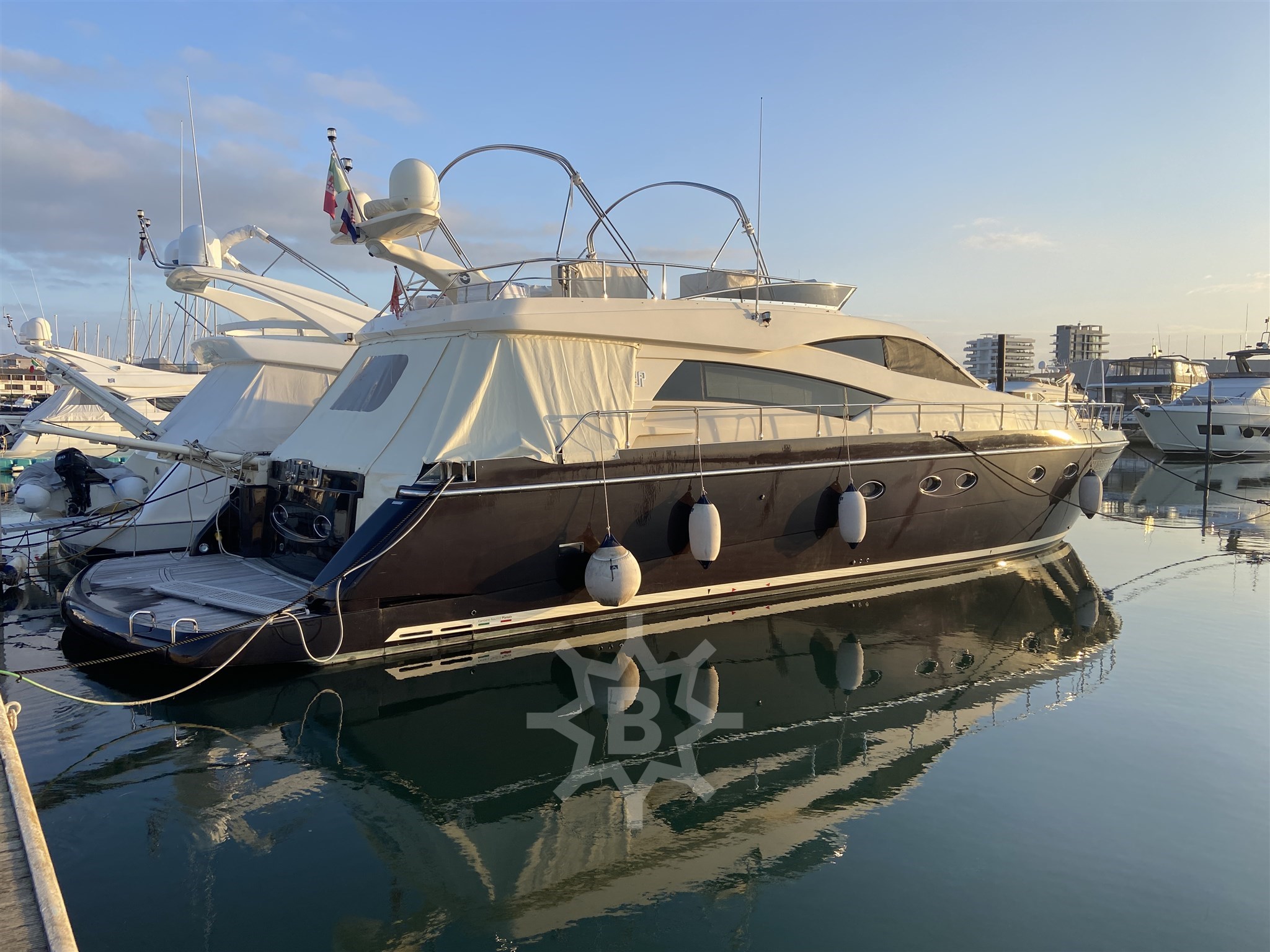 Angolo barra - Bussola - Comando motori elettronico - Ecoscandaglio - GPS - Log - Pilota automatico - Radar - Radio VHF - Camminamenti laterali in teak - Doccia esterna - Doppia timoneria - Elica di poppa - stern thruster - Elica di prua - bow thruster - Faro orientabile - Indicatori Flaps - Luci di cortesia - Luci subacquee - Passerella - Piattaforma - Pozzetto Teak - Scaletta da bagno - Tavolo pozzetto - Winch tonneggio di poppa - Winch tonneggio di prua - Aria condizionata - BBQ/ Grill - Dissalatore - Telecamera - Antenna Satellitare TV - Home Theater - Impianto TV - Stereo - TV - Frigorifero esterno - Frigorifero interno (2) - ICE Maker - Lavastoviglie - Lavatrice - Piastra elettrica - Bimini - Copripozzetto - Cuscineria completa - Cuscineria di poppa - Cuscineria di prua - Cuscineria fly - Cuscineria Pozzetto - Telo Copertura Fly - Zanzariere -