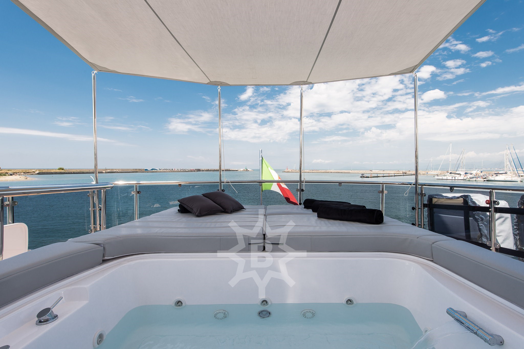 AIS - Bussola - Comando motori elettronico (2) - Contametri catena - Contamiglia - DSC vhf - Ecoscandaglio - GPS - Interfaccia - Interfono - MeteoFax - Pilota automatico - Plotter - Radar - Radio VHF - Allarme fumo/gas - Allarme motore - Allarme sentina - Autoclave - Autogonfiabile - Batterie - Bitte Abbattibili (2) - Camminamenti laterali in teak - Caricabatterie - Doccia esterna - Elica di poppa - stern thruster - Elica di prua - bow thruster - Faro orientabile - Flap idraulici - Hard top - Impianto antincendio - Indicatori Flaps - Lavaggio catena - Lavandino nel Pozzetto - Luci subacquee - Passerella - Pompa di sentina automatica - Pompa di sentina elettrica - Porta laterale (2) - Pozzetto Teak - Presa 220V banchina - Presa acqua banchina - Raddrizzatore - Rollbar - Salpa Ancore Elettrico - Scaletta da bagno - Stabilizzatori - Tavolo pozzetto - Tender - Tromba - Winch tonneggio di poppa (2) - Winch tonneggio di prua - Aria condizionata - BBQ/ Grill - Boiler - Cassaforte - Clima reversibile - Dissalatore (2) - Impianto acque nere - Inverter - Pavimento interno in legno - Prese interne 12v - Prese interne 220v - Pressarifiuti - Serbatoio Acque Nere - Telecamera - WC marino elettrico (5) - Altoparlanti - Antenna Satellitare TV - Decoder satellite - Digitale Terrestre - DVD - Home Theater - Impianto TV - Radio AM/FM - Stereo - TV (5) - Congelatore - Forno - Frigorifero esterno - Frigorifero interno - ICE Maker - Lavasciuga - Lavastoviglie - Lavatrice - Piastra elettrica - Piastra in vetroceramica - Cuscineria completa - Cuscineria di poppa - Cuscineria di prua - Cuscineria fly - Cuscineria Pozzetto - Oscuranti - Teli copri finestra - Telo copriconsolle - Telo coprisedile - Tendalino - Zanzariere -