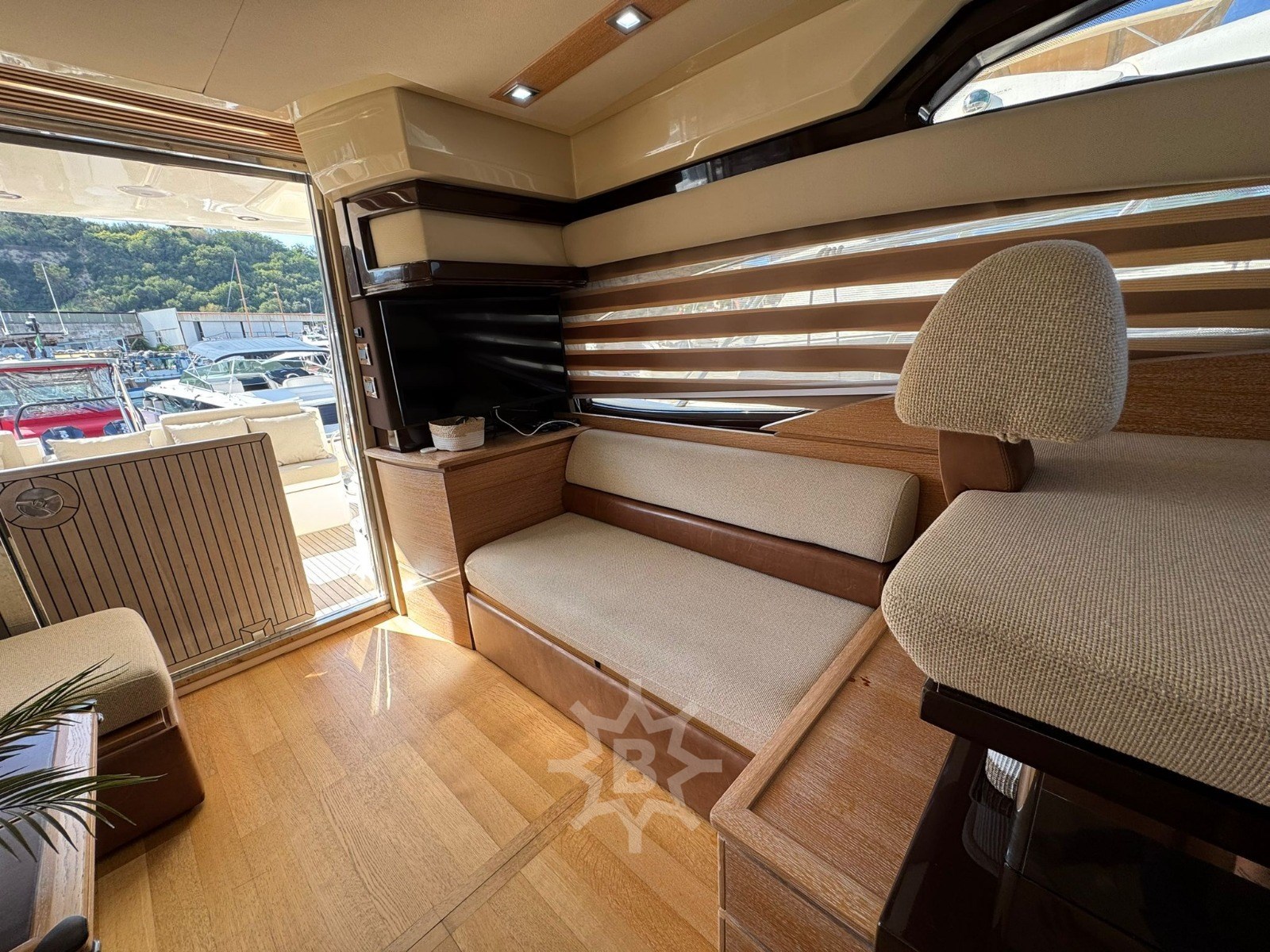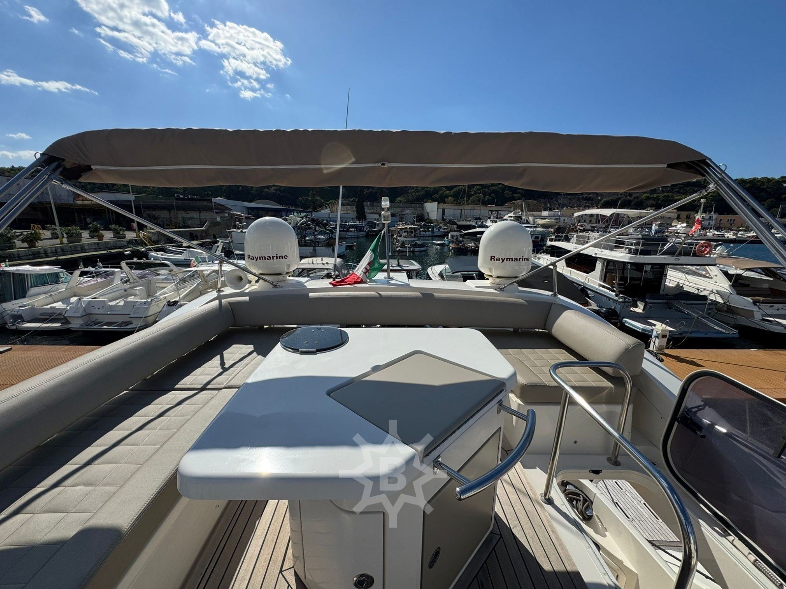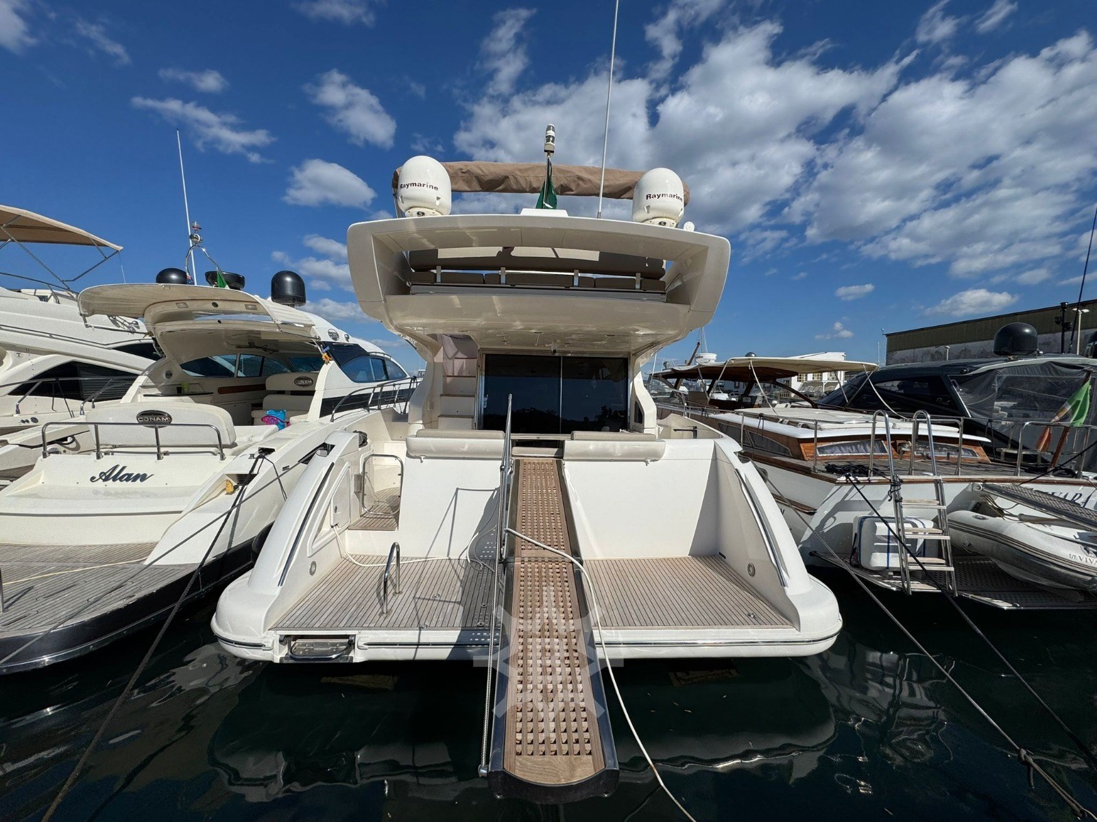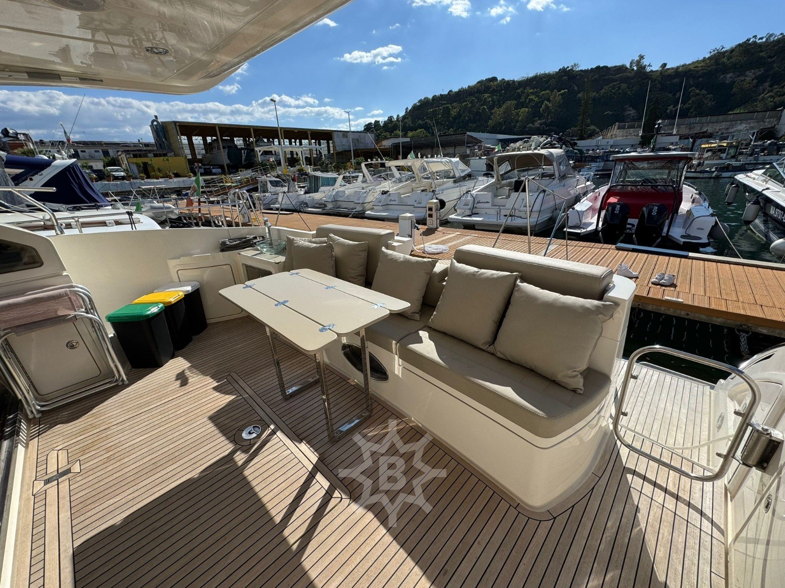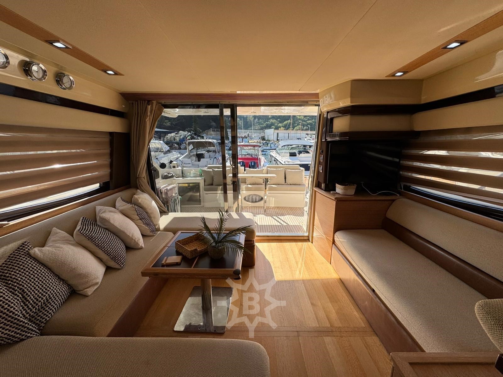 Angolo barra - Bussola - Comando motori elettronico - Contametri catena - Ecoscandaglio - GPS - Log - Pilota automatico - Radio VHF - Autoclave - Caricabatterie - Doccia esterna - Elica di prua - bow thruster - Flap idraulici - Lavandino nel Pozzetto - Luci di cortesia - Passerella - Piattaforma - Pozzetto Teak - Presa 220V banchina - Salpa Ancore Elettrico - Scaletta da bagno - Tavolo pozzetto - Aria condizionata - Boiler - Clima reversibile - Impianto acque nere - Pavimento interno in legno - Telecamera - WC marino elettrico (2) - Antenna Satellitare TV - Decoder satellite - Impianto TV - Stereo - TV - Cucina - Frigorifero esterno - Frigorifero interno - Ghiacciaia - Lavatrice - Microonde - Piastra in vetroceramica - Bimini - Cuscineria completa - Cuscineria di poppa - Cuscineria di prua - Cuscineria fly - Cuscineria Pozzetto - Teli copri finestra -